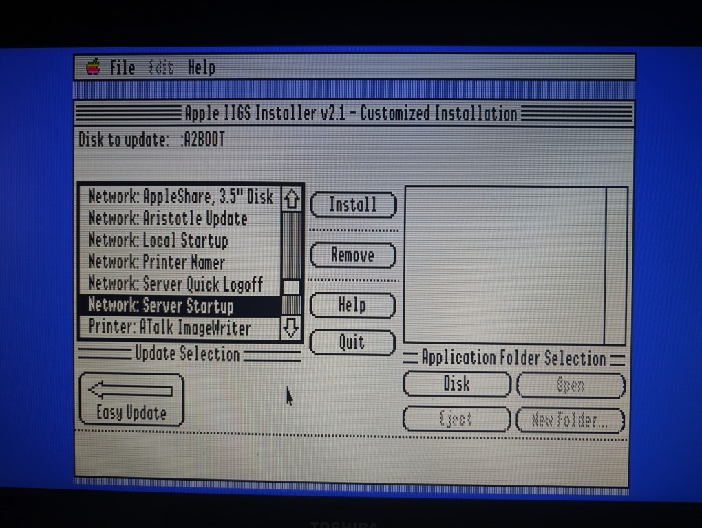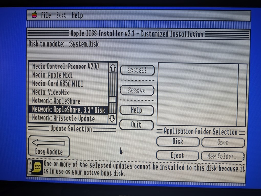 On the Apple IIgs side, we first need to install system software into the remote volume that will be used for netbooting.